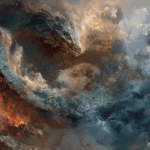 Среди бескрайних просторов скандинавских мифов, где боги странствуют по земле, а герои совершают немыслимые деяния, есть одна из самых пленительных и, пожалуй, устрашающих тайн. Речь, конечно же, идёт о Мировом Змее, Йормунганде 🐍, чьё гигантское тело, как считается, опоясывает весь мир людей — Мидгард. Возможно, вы когда-нибудь задумывались, почему именно этому исполинскому созданию была уготована такая участь, это почти немыслимое бремя. Что за сила заставила его обернуться вокруг целой планеты, удерживая свой собственный хвост в пасти? В некоторых отношениях, эта история, как и многие северные саги, пронизана идеями судьбы, предопределения и, конечно, страха перед неведомым. Чтобы понять эту загадку, мы должны перенестись в самое начало времён, в те древние эпохи, когда мир ещё только формировался из хаоса, а боги-асы только начинали утверждать свою власть. Тогда же, в ту пору, когда Локи, коварный бог обмана и хитрости, произвёл на свет троих необычайных отпрысков от великанши Анг