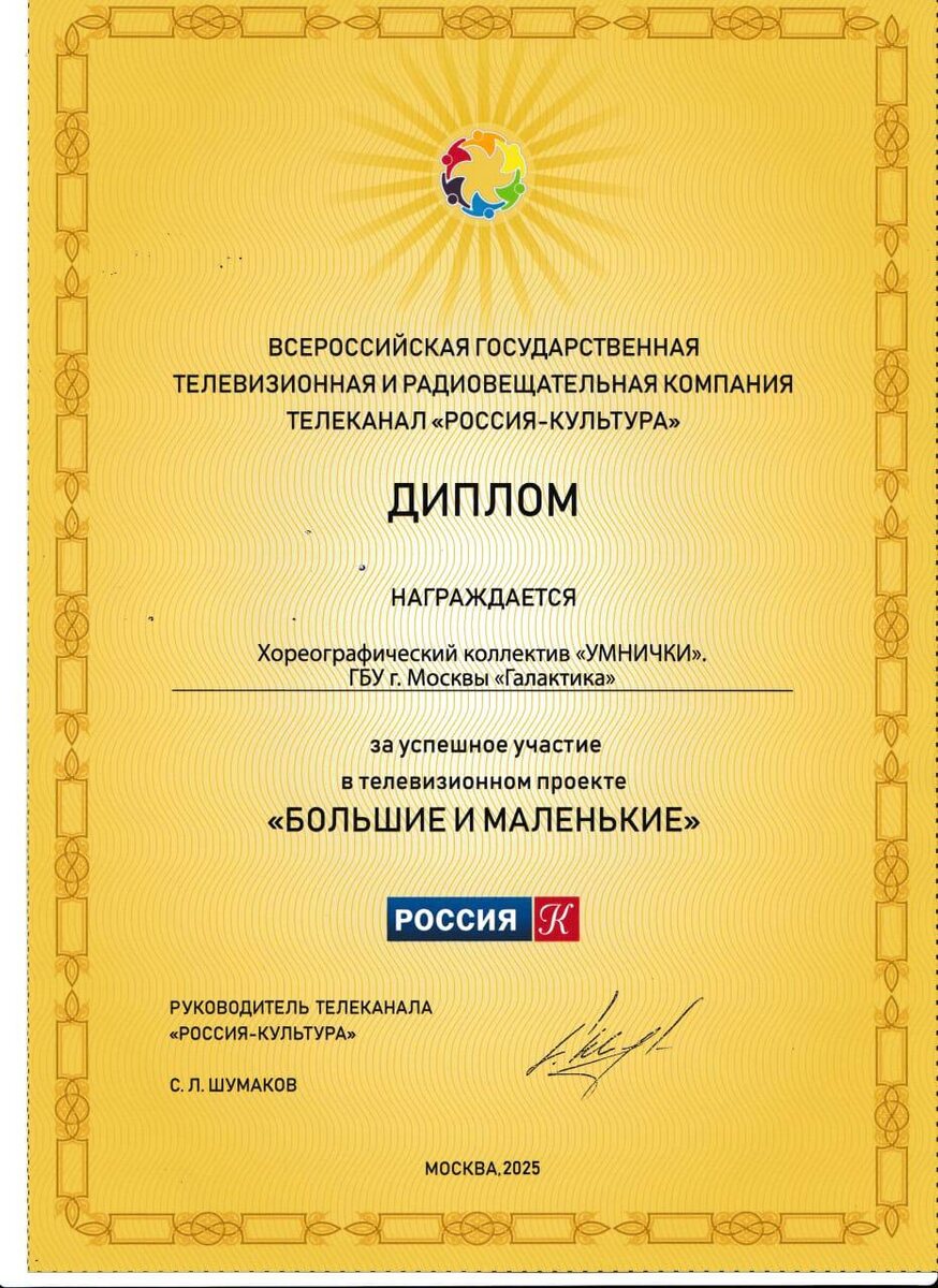 📺 Анонс от телеканала "Россия-Культура" ! Наши соседские дети из Хореографического коллектива "УМНИЧКИ" (с ул. Веерная) через несколько дней будут покорять телеэкраны всей России! 📆 В эту субботу, 20 сентября в 14.50 на Телеканале "Россия-Культура" выйдет телепроект "Большие и маленькие", посвященный детской хореографии с участием сильнейших детских хореографических коллективов нашей страны и ближнего зарубежья. Хореографический коллектив "УМНИЧКИ", пройдя колоссальный отбор экспертов одного из центральных каналов России, примет участие в этой передаче! Наши дети станцуют одну из постановок коллектива и расскажут об "УМНИЧКАХ" и своем руководителе. Приглашаем всех любителей танцевального искусства в предстоящую субботу в 14.50 к экранам телевизоров посмотреть на наших соседских деток из "УМНИЧЕК" и на другие сильнейшие детские танцевальные коллективы! Будет очень интересно! @matveevkalivee