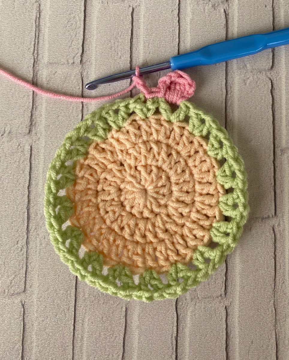 💐💐💐 1) КА - 12 ссн 2) пр*6 (24) 3) (1 ссн, пр)*6 (36) Меняем цвет (зеленая нить): 1 ссн, 1 вп, 1 ссн в эту же петлю, пропускаем одну петлю и в следующую вяжем такую же «галочку»: 1 ссн, 1 вп, 1 ссн в эту же петлю Меняем цвет (розовая нить): 2 вп, пышный столбик (4 ссн), 2 вп, сс в эту же «галочку», сс в следующую «галочку». 🛍️купить https://www.avito.ru/krasnodar/mebel_i_interer/salfetki_vyazanye_7636960440?utm_campaign=native&utm_medium=item_page_ios&utm_source=soc_sharing_seller