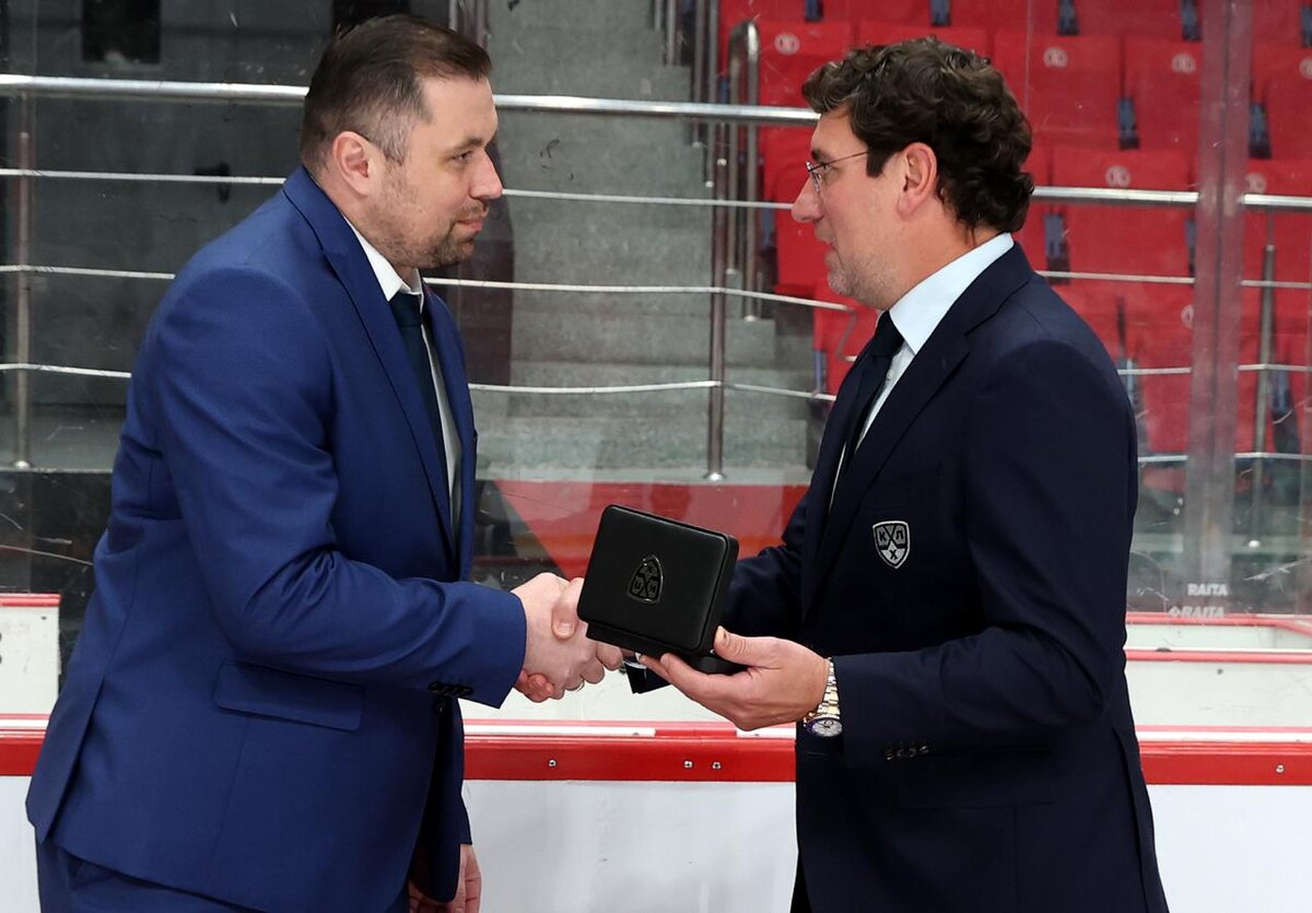 Главный тренер «Капитана» Денис Куляш получил награду «Клуба рекордсменов КХЛ» — перед матчем с «Локо» её вручил вице-президент КХЛ по