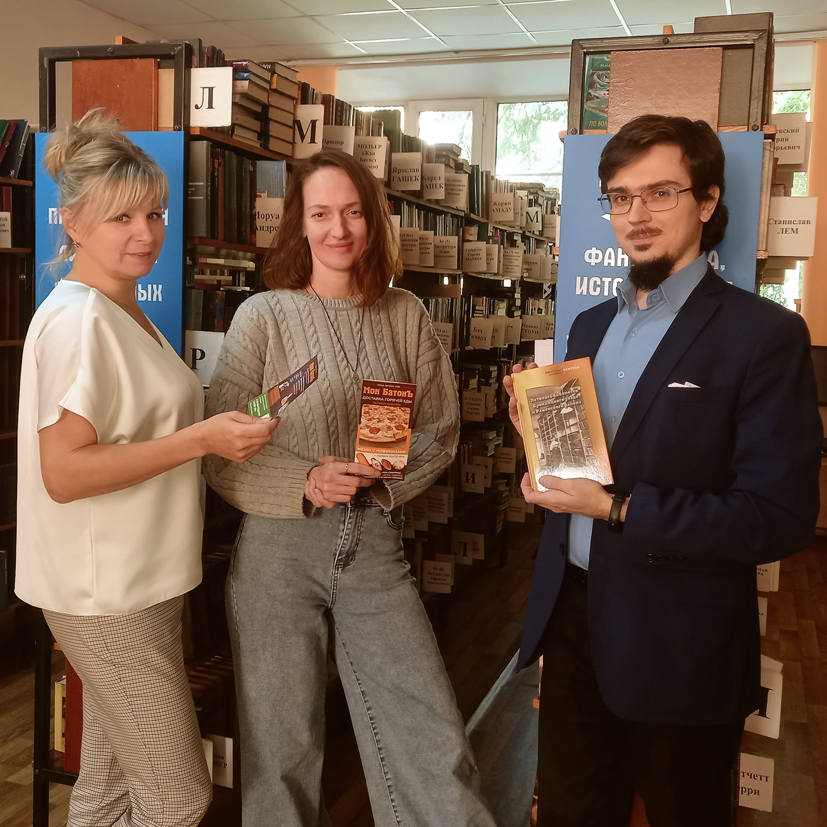 Но основная новость: поэт Олег Черкалин, заведующая библиотекой Татьяна Громова и библиотекарь Анна Голуб договорились и о съёмках киношных проектов в студии #ричардфильм. В весьма атмосферном антураже могут сниматься наши актёры. А учитывая, что мы снимаем кино и про поэтесс, это будет прекрасная коллаборация. Хотя, будем честны, Олег может покреативить и добавить провокационных ноток. Хотя, благая цель будет выполнена, это 100% — люди захотят оказаться в библиотеке!