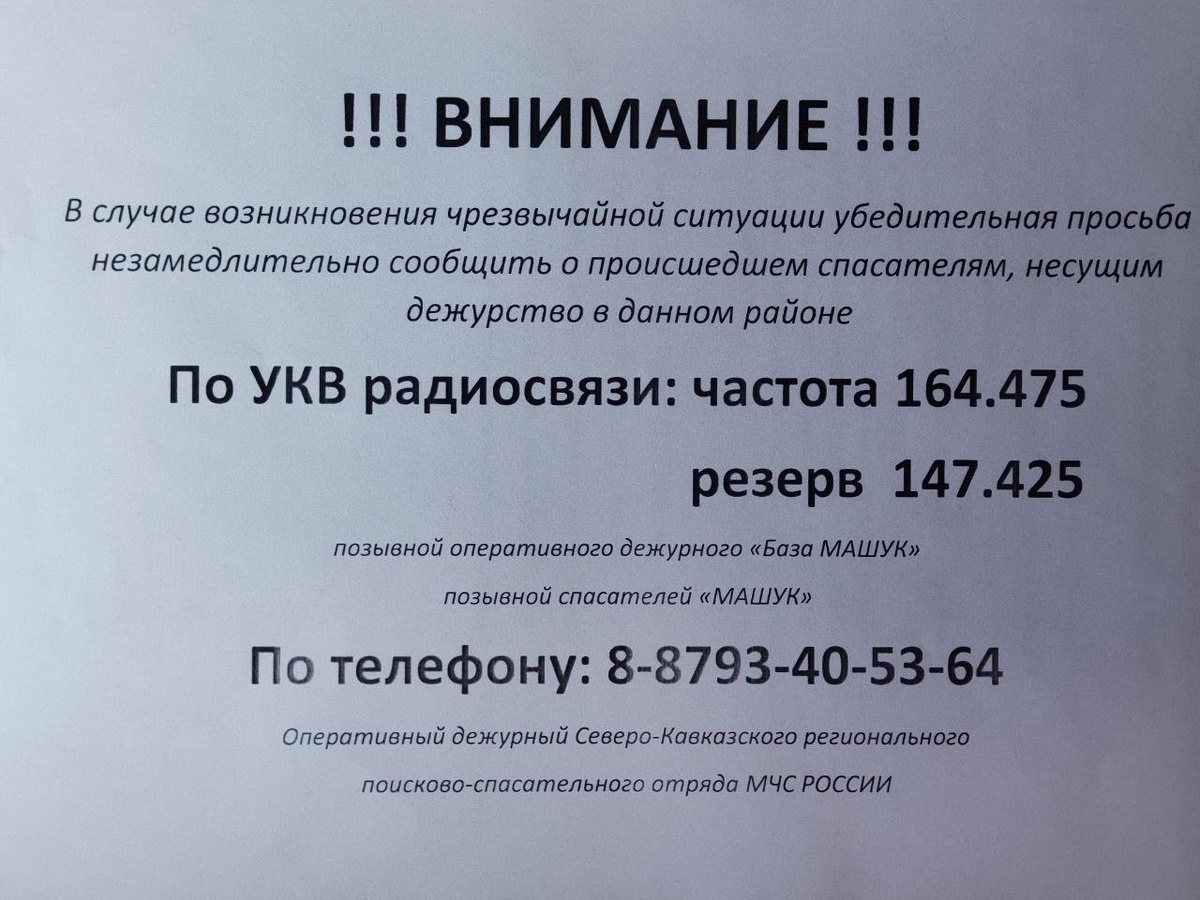 ⚠️Телефон для связи: 8-8793-40-53-64 (Оперативный дежурный Северо-Кавказского регионального поисково-спасательного отряда МЧС России).