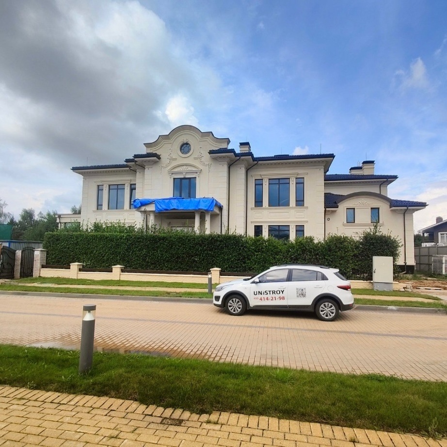 Делимся свежими новостями со строительства дома в элитном Подмосковном поселке. Работы идут по плану, вот что завершили на этой неделе: В основном доме: ✔️ Залили стяжку пола на цокольном этаже. Предварительно отшлифовали основание, уложили арматуру и выставили маяки. ✔️ Сейчас ухаживаем за бетоном: увлажняем и укрываем, чтобы набрал прочность без трещин. Снаружи: ✔️ Закончили монтаж водосточной системы на основном доме. ✔️ Полностью уложили черепицу на беседке и хозблоке. ✔️ Начали облицовку фасада пристройки Дагестанским камнем. Работаем дальше, и следим за ходом строительства вместе! 👌🏼 Наш сайт: www.unistroy24.ru Телефон: 8(495)414-21-98 #millenniumpark #стройка #строительство #отделка #фасад #кровля #юнистрой24