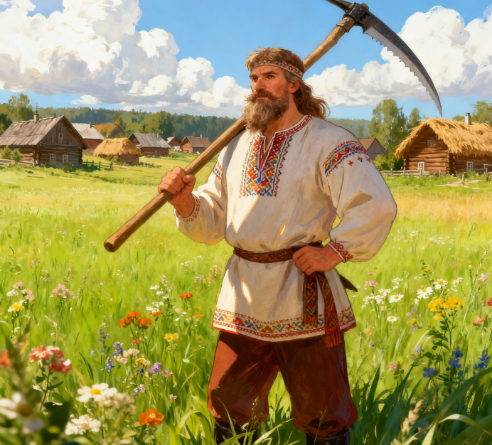 Микула Селянинович — былинный герой, олицетворяющий трудолюбие, простоту и огромную внутреннюю и физическую силу русского крестьянства. Микула представлен как пахарь, человек труда, обладающий необыкновенной могучей силой, которую не могут превзойти ни княжеские дружинники, ни разбойники. Его работа — не просто обязанность, а призвание, и только он способен поднять и управлять «тягой земною», работая на земле и защищая её. В былинах эта способность символизирует связь народа с родной землёй, его глубокую мудрость и любовь к родине. Микула скромен, добродушен, сдержан, терпелив. Он не ищет славы и не бывает хвастлив, но обладает сильным нравственным стержнем и внутренней благородностью. Микула щедр и гостеприимен, умеет угостить, порадовать окружающих, а при необходимости проявляет стойкость и боевую решимость, чтобы защитить свой народ. Этот герой символизирует простой народ, его силу, мудрость и справедливость. Он живёт по законам честности и всегда готов прийти на помощь, показать пр