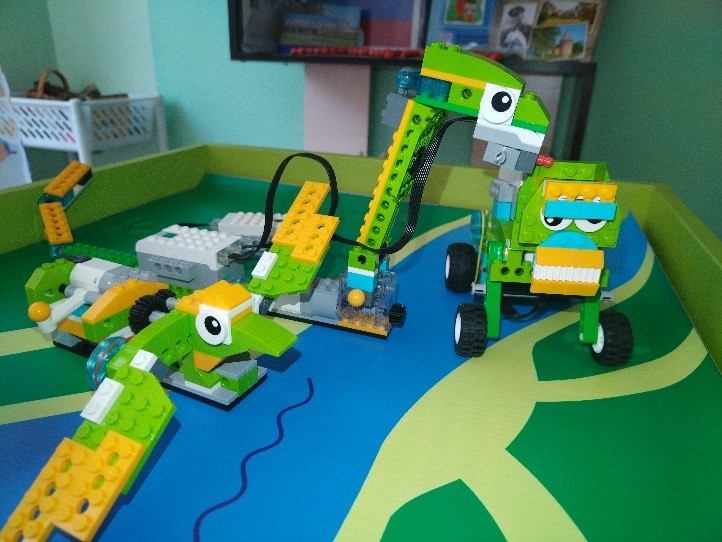 В детском саду мы изучаем робототехнику с конструктором LEGO WeDo 2.0 , создаем движущихся роботов по инструкции. На занятиях создаем программы в приложении LEGO WeDo 2.0. по готовому шаблону. Мы научились строить роботов-животных таких, как: