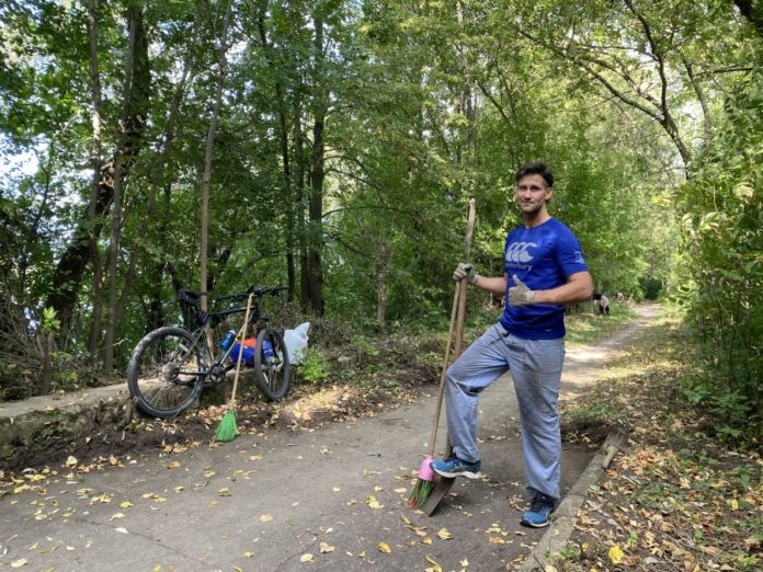 Чуть подальше трудится юная помощница Татьяна. Девушка рассказывает, что однажды гуляла в Лесопарке и увидела, как Алексей освобождает дорожки набережной от дёрна. Захотела ему помочь. И вот уже в третий раз приходит сюда по выходным. Недавно на помощь Алексею пришли рязанские «Волонтеры культуры».