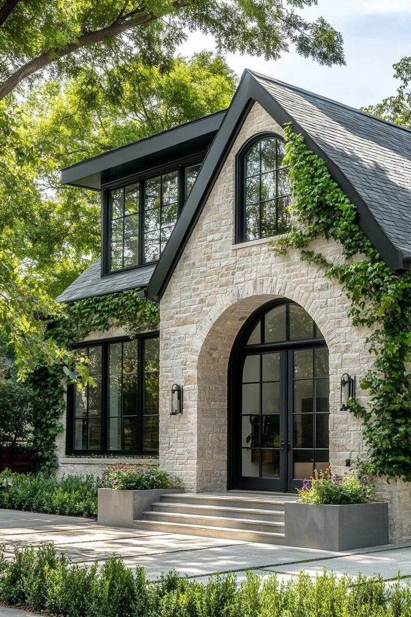 Каменный A‑Frame дом в лесу для постоянного проживания Уникальное сочетание A‑Frame формы и каменного фасада создаёт прочный, уютный и эстетичный дом, идеально подходящий для круглогодичного проживания в лесной среде. Конструкция и материалы - Каркас и крыша - Традиционная A‑Frame ферма из клеёного бруса или стального профиля для жёсткости и долговечности. - Утепление — минеральная вата или PIR‑панели; пароизоляция и ветрозащита обязательны. - Фасад и фундамент - Каменная кладка (натур. камень или облицовочный камень) на вентилируемом фасаде — защита от влаги и огня. - Фундамент — монолитная плита или ленточный с ростверком, с учётом пучинистости грунта. - Боковые пристройки - Прямоугольные объёмы с двускатной крышей — для хозяйственных помещений, гаража или дополнительной жилой площади. - Строятся по независимой от A‑Frame схеме, но с общими несущими узлами и коммуникациями. Планировка и комфорт - Первый этаж - Открытая общая зона с высокой центральной частью — гостин