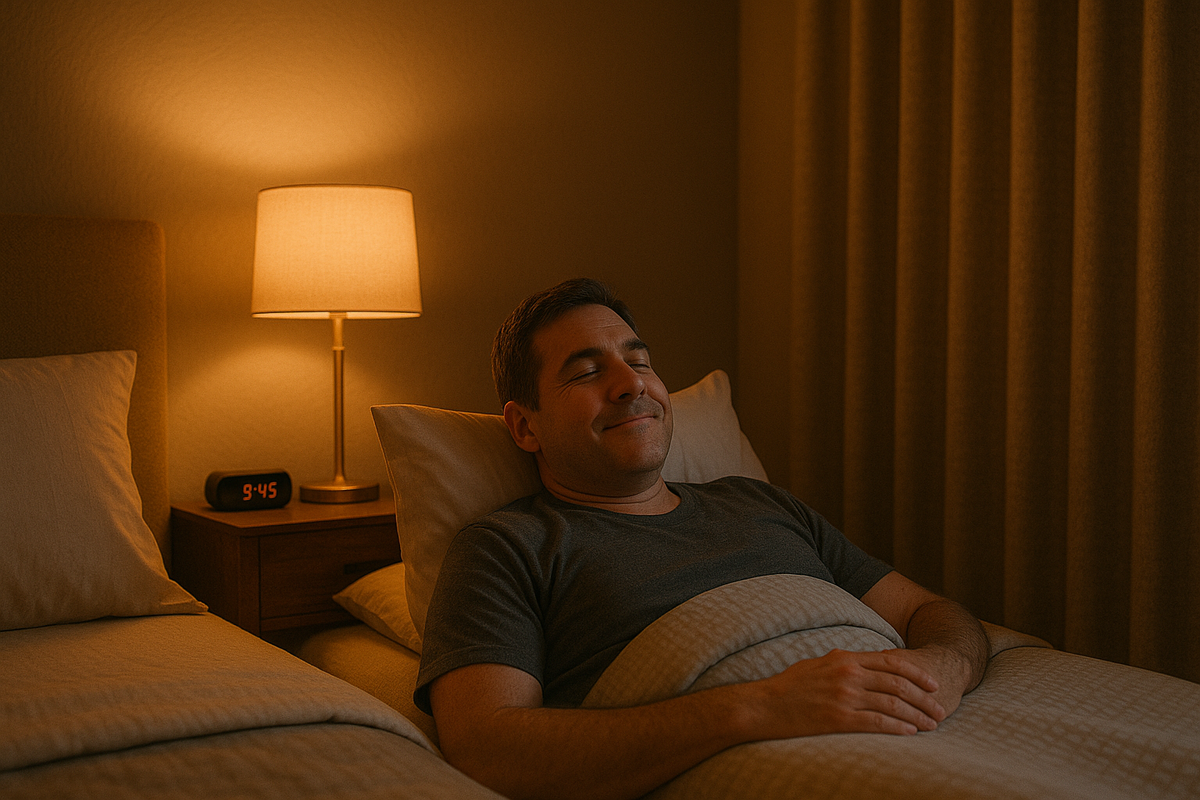 Яркий холодный свет сбивает биоритмы, мозг думает, что всё ещё день. Тёплое приглушение даёт телу команду: вырабатывай мелатон