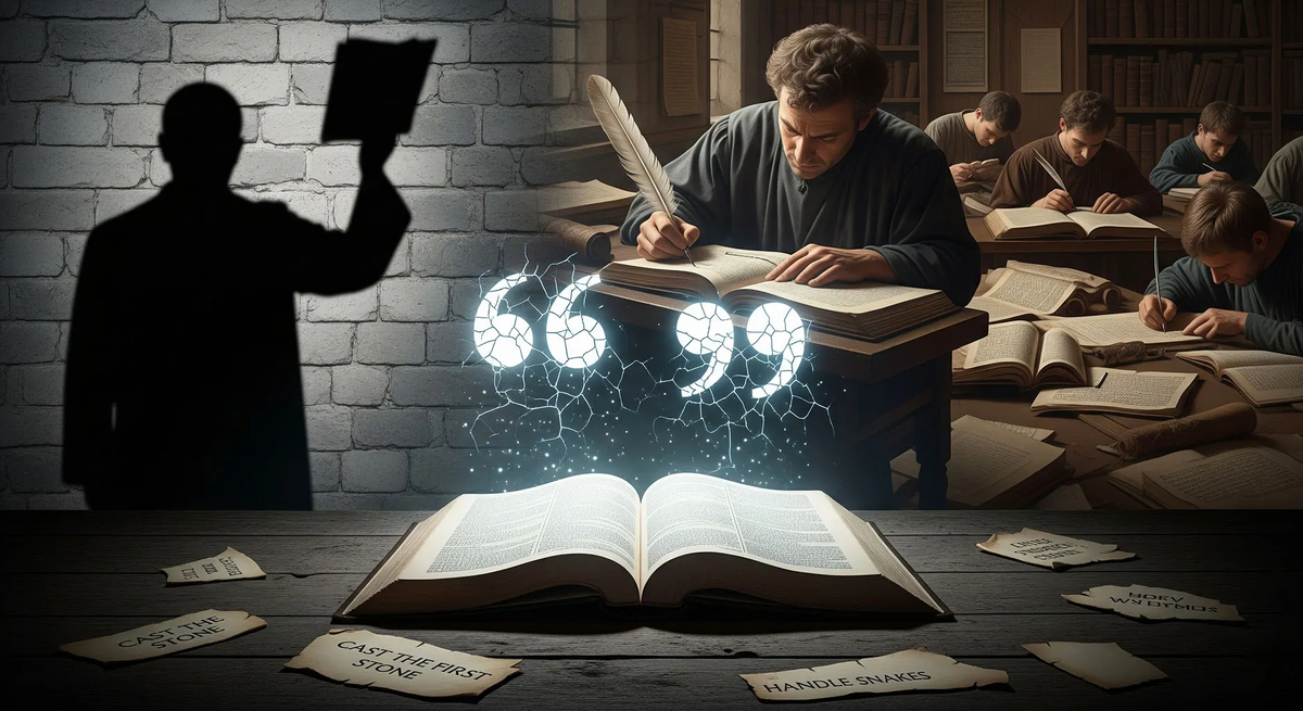 Те самые звучные фразы, которые люди любят приписывать Иисусу — те, что печатают на кружках, вышивают на подушках, лепят на бамперах и выкрикивают с кафедры? Всё это неплохо. Если только не учитывать один маленький момент: многое из этого — подделка. Даже христианские учёные это признают, наряду с учёными-секуляристами. Речь идёт не о неправильных переводах, а о полномасштабных фальсификациях, вставленных в текст спустя столетия.