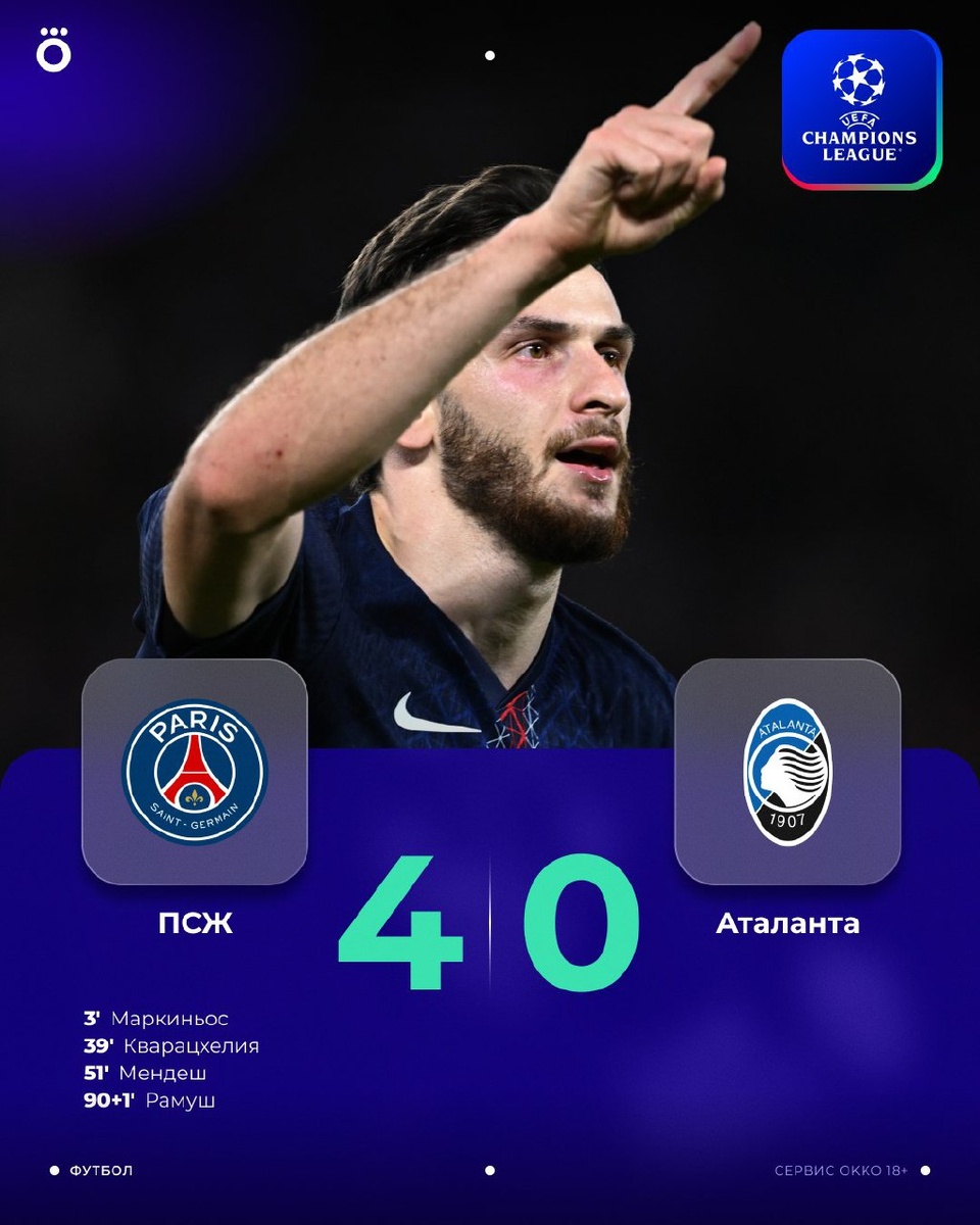 «ПСЖ» без труда разгромил «Аталанту». По-чемпионски начинают новый еврокубковый сезон 😎