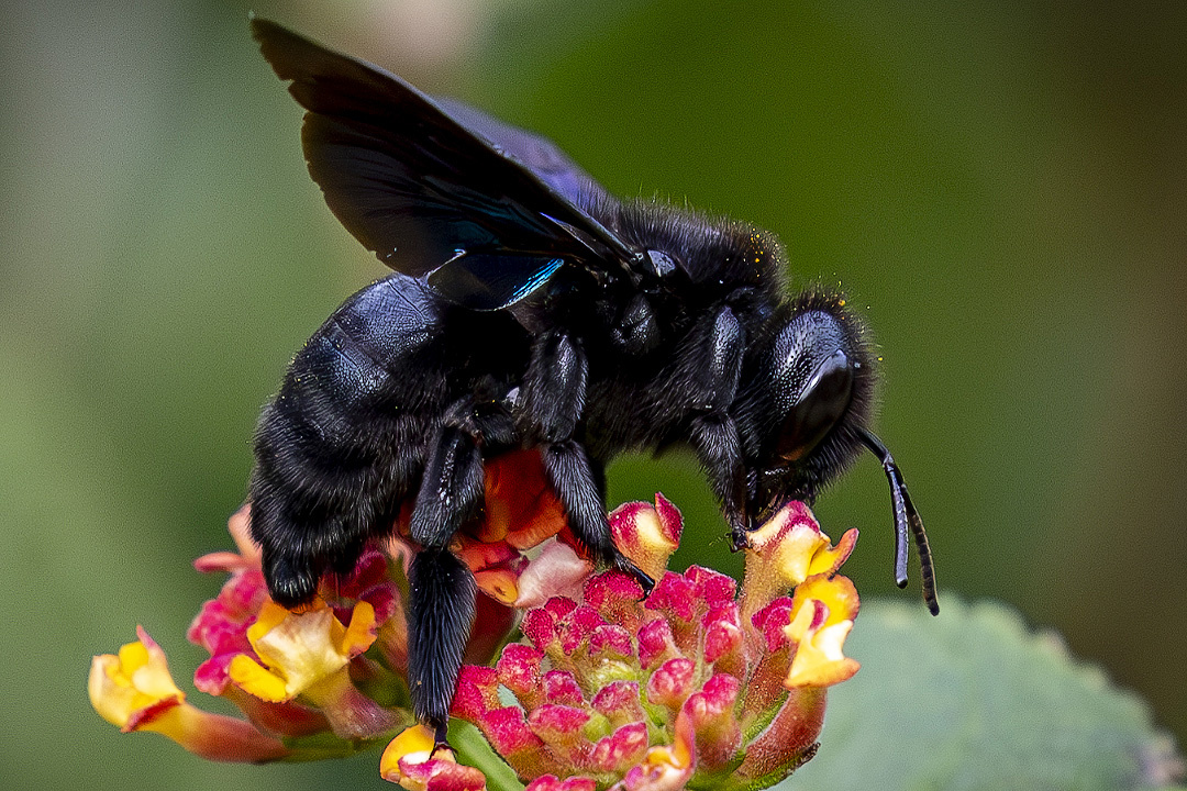 Привет, мои дорогие любители необычной земной фауны, сегодня я поведу вас в летний сад, где цветы колышутся на ветру, а воздух наполнен густым ароматом липового цвета. В этой обстановке появляется герой, чьё жужжание похоже скорее на маленький моторчик, чем на привычную песнь пчелы. Согласитесь, от массивной тёмной тени, пронёсшейся мимо лица, сердце у многих невольно ёкает: «Оса!» или даже «Шмель-гигант!». Но нет, обманчивая внешность часто ведёт нас не туда. Наш персонаж вовсе не стремится напугать — он занят своими важными делами и с удивительным упорством готовит жилище для будущего потомства. Это пчела-плотник (Xylocopa violacea), одна из самых крупных пчёл Европы. В отличие от привычных медоносных собратьев, она не строит сот в улье, а предпочитает выдалбливать уютные ходы прямо в древесине. За это и получила своё звучное название — плотник. Живёт этот красавец по всей южной и средней полосе Европы, встречается и в России — особенно там, где лето тёплое и щедрое на цветы. Её можн