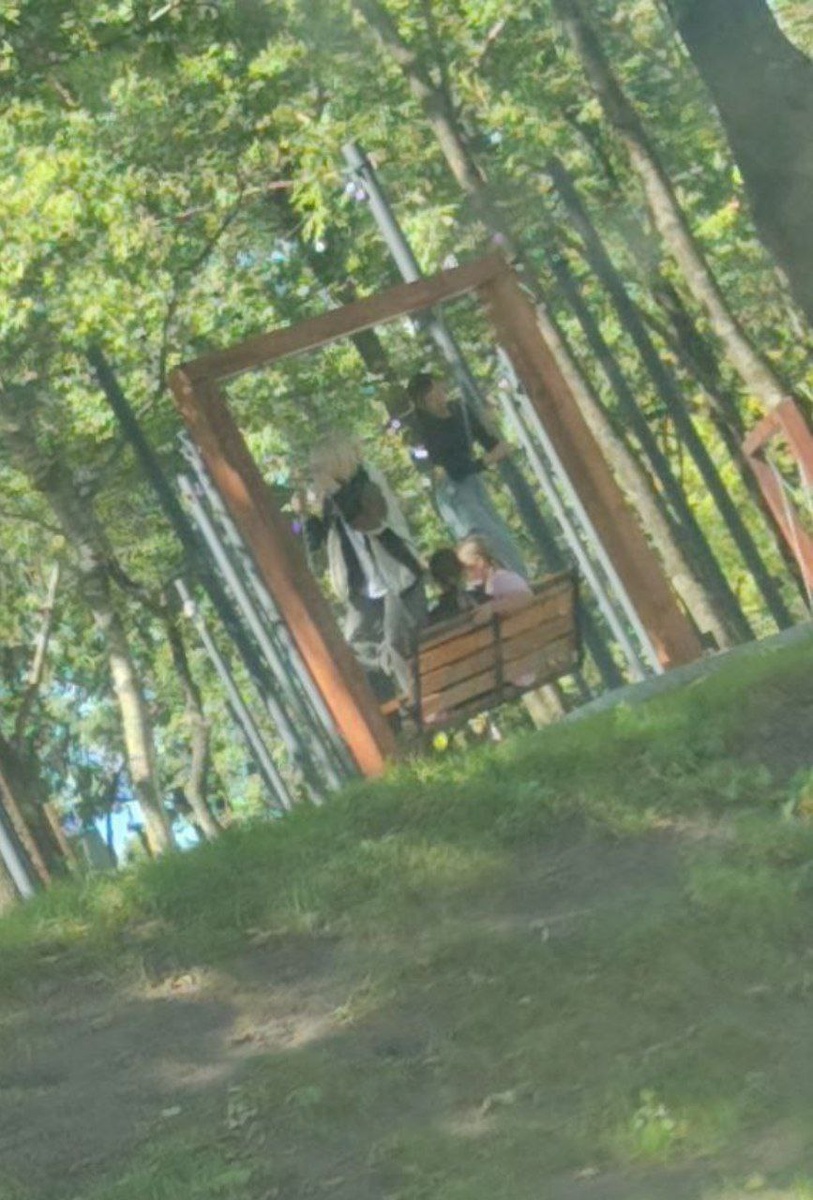 Новые качели в новом сквере на Борисенко 102 очень популярны. Подростки гурьбой испытывают их на прочность...