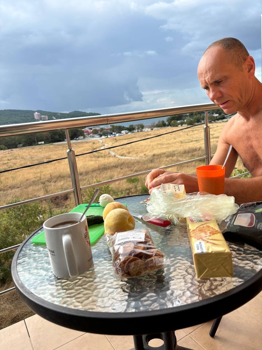 Погода испортилась. Быстро завтракаем и на море. Вышли и начал накрапывать дождь. А на пляже спускают в воду гидроциклы. Из-за погоды отдыхающих мало. Море холодное, но всё равно купаемся. Погода меняется на глазах. Домой возвращаемся под дождём. Замёрзли, отогреваемся чаем с лимоном. Выдвигаемся погулять и на рынок. По всей набережной продают мягкое мороженое, 5 шариков 150 рублей. Не впечатлило:( Сделали два круга по рынку. Купили абхазскую аджику, несколько соусов домой и масло растительное из жареных семечек. Зашли в «Пятёрочку» за пивом и креветками. Улицы в Дивноморском очень узкие, двухполосные, причём одна полоса занята припаркованными машинами. А некоторые паркуются прямо на тротуаре. На улице Ленина. Возвращаемся домой на обед. Разбираем покупки. И снова гулять. Домой возвращаемся на закате. На цокольном этаже отеля есть кухня, сварили креветки. И вот такое вкусное завершение дня - пицца и креветки! Опять находили 10 километров. Всем приятных путешествий!