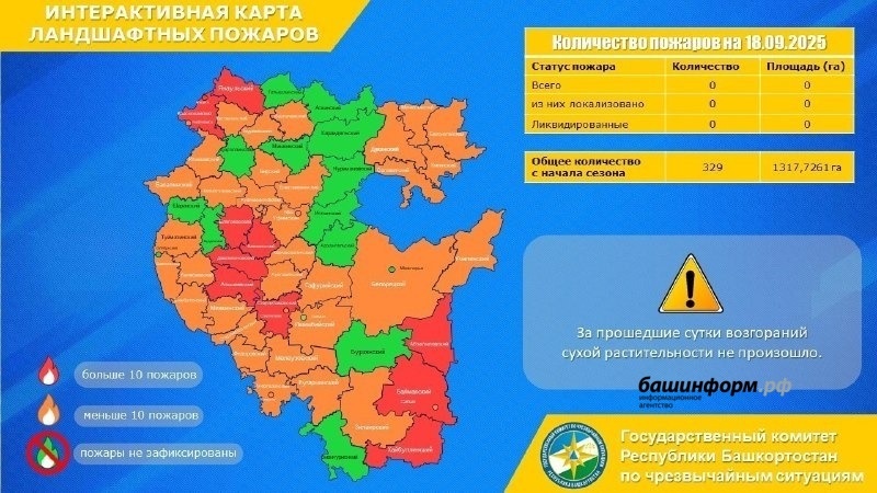 В госкомитете Башкирии по ЧС сообщили актуальную информацию. За истекшие сутки лесных пожаров не зарегистрировано, отметили в ведомстве. Всего с начала 2025 года возникло 14 очагов лесных пожаров на общей площади более 29 гектаров и 329 загораний сухой растительности на общей площади более 1300 гектаров. Ранее «Башинформ» сообщал о том, что в Башкирии прогнозируются заморозки и слабый ветер.