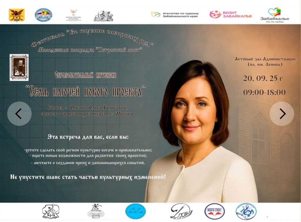 👨👩👦 Молодёжная площадка "Петровский мост" Международного фестиваля "Во глубине сибирских руд..." 🗝 Образовательный интенсив "7 ключей нового проекта" от эксперта грантовых конкурсов Ольги Мигиной (г. Москва) 🗓 20 сентября 2025 г. 🗺 Актовый зал администрации пл. им. Ленина 🕓 09:00 - 18:00 ч.