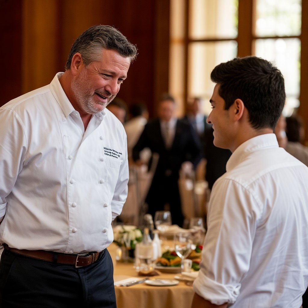 Через несколько минут в зал вошел мужчина в белоснежном кителе и колпаке. Он был высоким, подтянутым, с усталым, но спокойным лицом профессионала. Он шел, вытирая руки о полотенце.