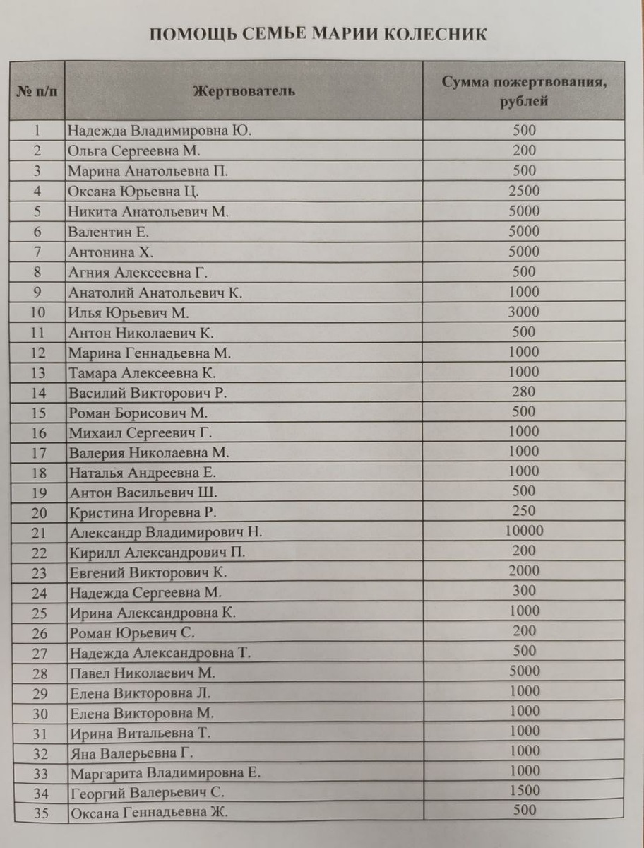 НАРОДНЫЙ СБОР. ПЕРВЫЙ ОТЧЁТ Друзья! Соседи! Мы вместе собрали с вами 134274 рубля в помощь семье Марии Колесник, попавшей в трудную жизненную ситуацию. Вчера мужа Марии выписали из больницы. Теперь он уже дома. И сегодня я публикую первый отчёт о том, на что именно пошли ваши деньги: - аренда ходунков, коляски и кресла - 2500 рублей; - на сотовую связь Марии (у неё были долги) - 2000 рублей; - стиральная машина (с доставкой) - 17531 рубль; - холодильник (с доставкой) - 44470 рублей; - микроволновая печь - 5779 рублей; - лечение собаки (с передержкой) - 20000 рублей. Итого потрачено: 92280 рублей. Остаток: 41994 рубля. Продолжение следует... А всем принявшим участие в сборе ещё раз от меня лично огромное человеческое Спасибо! Вы - самые настоящие Люди От Павла Константинова