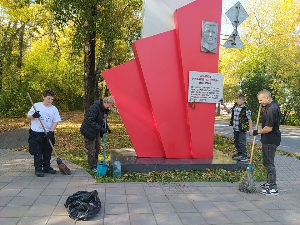 В Кемерове продолжают наводить порядок на территории объектов, связанных с Великой Отечественной войной В Рудничном районе активисты поддерживают чистоту около стелы памяти Михаила Петровича Абызова. Представители ТОС «Красная горка», сотрудники ЦРН «Союз», волонтёры школы №16 провели субботник: собрали мусор на территории памятного места, помыли саму стелу. Михаил Петрович Абызов погиб в 1942 году, подорвав вместе с собой дзот противника при обороне Воронежа. Посмертно награждён орденом Красного Знамени. #80ЛЕТПОБЕДЫ #КУZБАСС #ГодЗащитникаОтечества_Кемерово Фото: t.me/rudnik2022