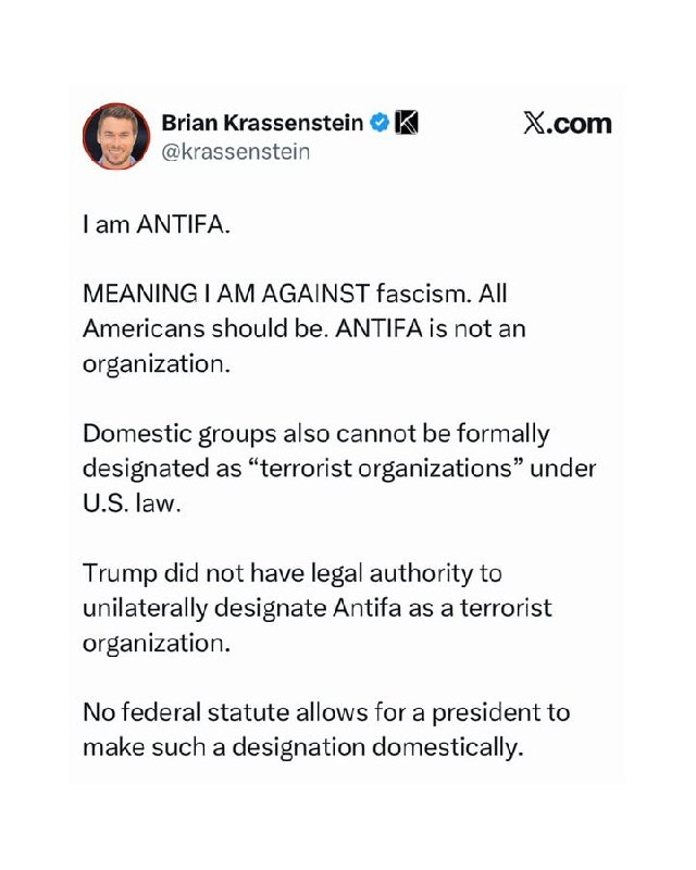 Krassenstein says 'I am ANTIFA' minutes after Trump designates it TERROR group