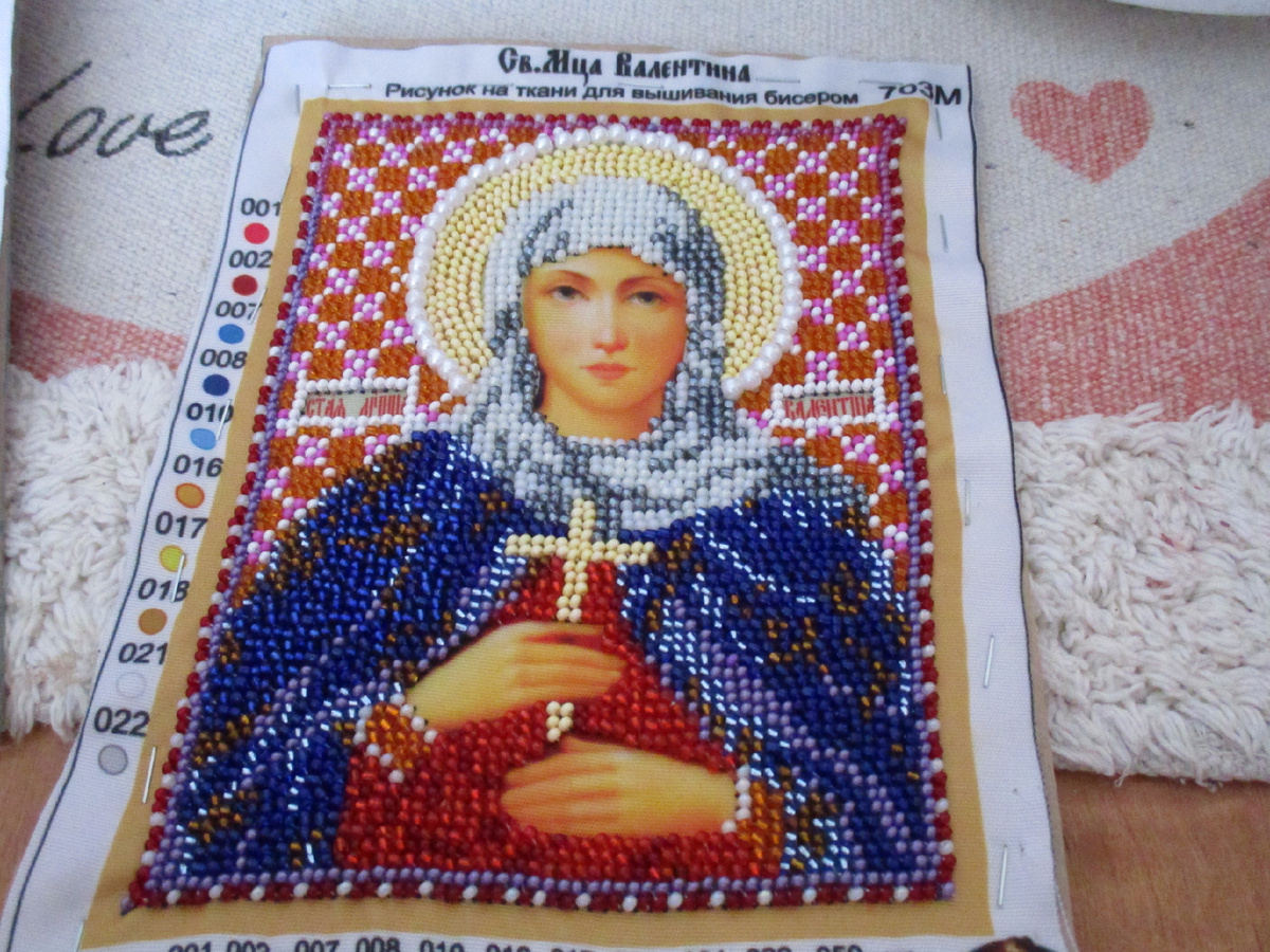 Как известно я много чего отдаю бывает просто так или в дар. Но бывает, что мне отдают просто так ненужный бисер. Дети вырастают увлечение проходит, а материал пылится в шкафу и занимает место. Я всегда не против взять бисер. В этом году по мимо бисера мне отдали еще и две вышивки «Иконки». Я обожаю вышивать крестом, но это дороговато для современности. Вышивка бисером не дешевле, но имеют проблему перекоса полотна после снятия с пялец, поэтому ее надо сразу натягивать хотя бы на картон. Иконы я не вышивала, потому как считаю, что такая работа должна быть выполнена по канонам. А каноны это соблюдение поста, испрашивание разрешения на работу над иконой у батюшки и хотя бы элементарное знание церковных праздников ( я кроме рождества и пасхи, именин не знаю). Но мне стало жалко не вышитые иконки на полотне, пролежат поблекнут или повредится основа. Поэтому я решила поработать над маленькими вышивками. Первой я вышила святого Федота потому как он вышивался довольно просто, на