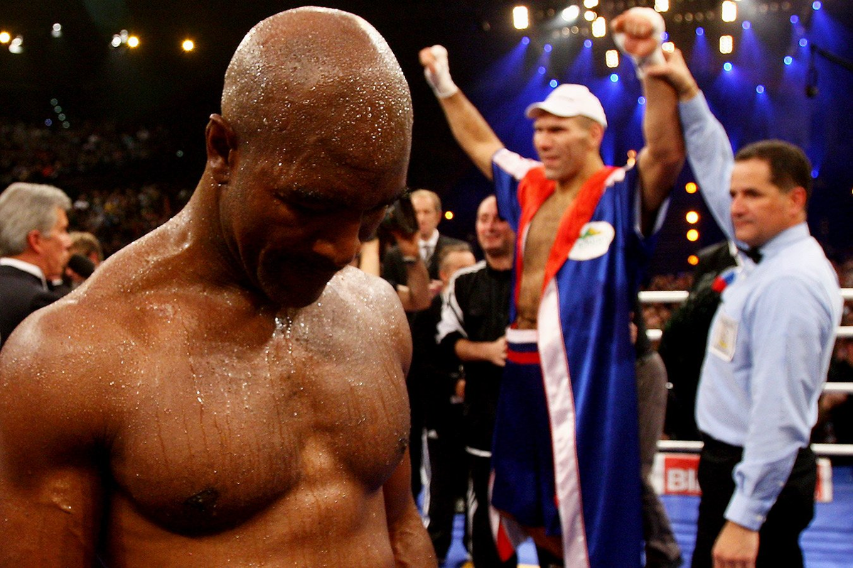 В ночь на 12 сентября в Лос-Анджелесе (штат Калифорния, США) пройдёт турнир по профессиональному боксу, в ходе которого на ринг должен был вернуться экс-чемпион мира в шести весовых категориях Оскар де ла Хойя. Ожидалось, что легенда встретится с экс-чемпионом UFC Витором Белфортом. Но 3 сентября стало известно, что схватка сорвалась. Оскар заразился коронавирусом. Тем не менее организаторы шоу нашли выход из положения. На бой с Белфортом выйдет другой заслуженный ветеран бокса, экс-абсолютный чемпион мира в первом тяжёлом и супертяжёлом весе Эвандер Холифилд. Американец предыдущий раз бился в 2011 году, а его последнее поражение случилось в 2008 году, тогда он спорным решением проиграл Николаю Валуеву. На фоне ожидаемого возвращения Эвандера вспоминаем его последнюю неудачу.