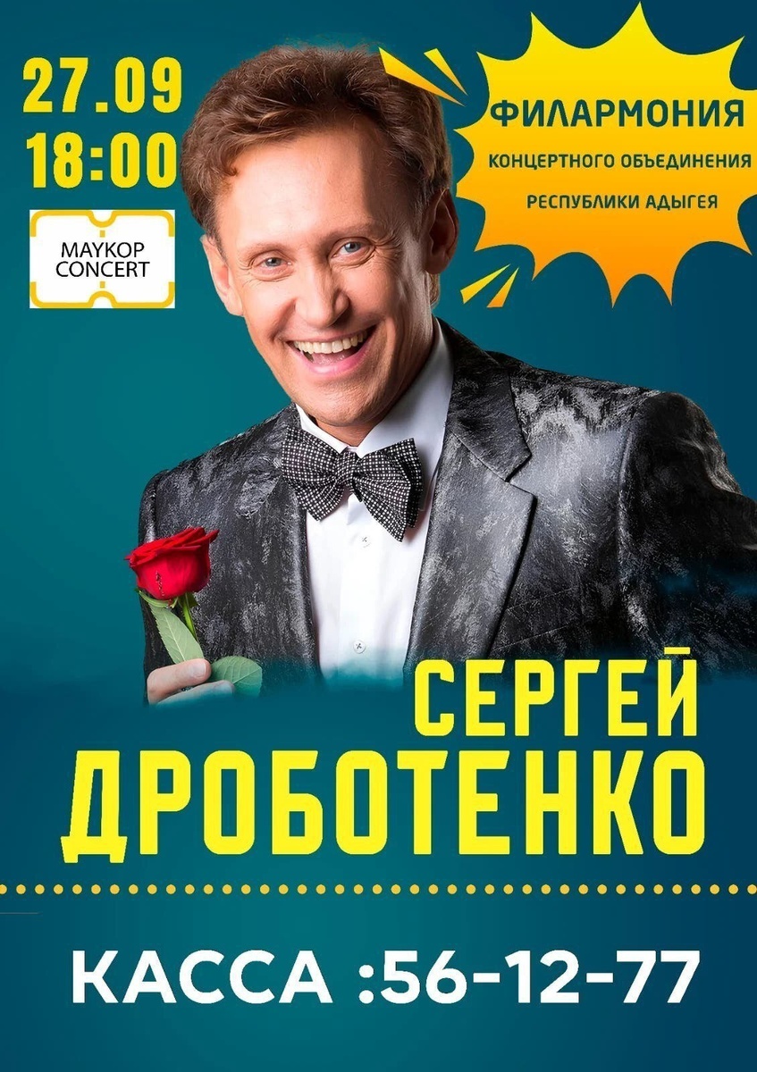 27 сентября в 18:00 в Большом зале Филармонии Концертного объединения Республики Адыгея состоится концерт Сергея Дроботенко