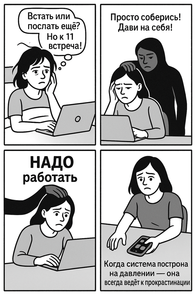 Прямо ощущаю, как рукам приходится давать еще отдельную команду "подняться печатать". Приходится их силой заставлять делать то, что обычно делается легко и само. И чувствую, как префронталка расходуется с х2-х3 скоростью. Да и то, руки вроде шевелятся с трудом, а все норовят куда-то убежать в соцсети. Они ощущают, что на них возложили очень сложную задачу - работать в недосыпе и сбегают. Итог