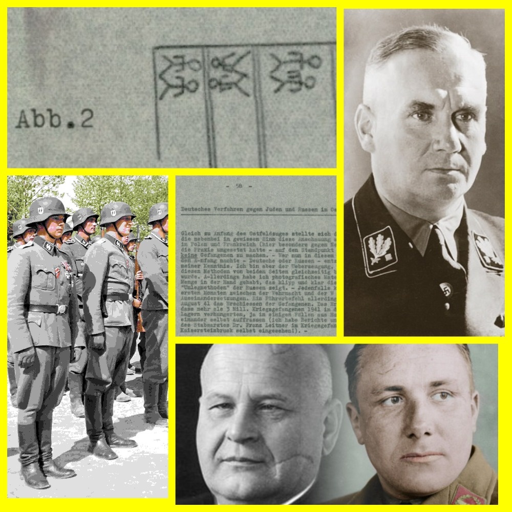 В самом начале Восточной кампании СС, в какой-то степени уже прибегавшие к подобной практике в Польше и Франции (здесь, особенно против «негров»), заняли позицию не брать пленных в России. Кто начал этот процесс — немцы или русские — мне неизвестно. Однако я убеждён, что обе стороны одновременно. Через мои руки прошло большое количество фотоматериалов, наглядно демонстрировавших зверские «методы уничтожения» русских. Во всяком случае, в первые месяцы это привело к интенсивным столкновениям между Вермахтом и СС. Однако в августе 1941 года фюрер своим приказом запретил расстреливать пленных. Результатом стала смерть 3 миллионов советских военнопленных в лагерях в 1941 году. В некоторых случаях из-за голода они даже прибегали к каннибализму (я лично изучал отчёты и фотографии штабного врача Франца Лейтнера из лагеря для военнопленных "Кайзерштайнбрух"!).