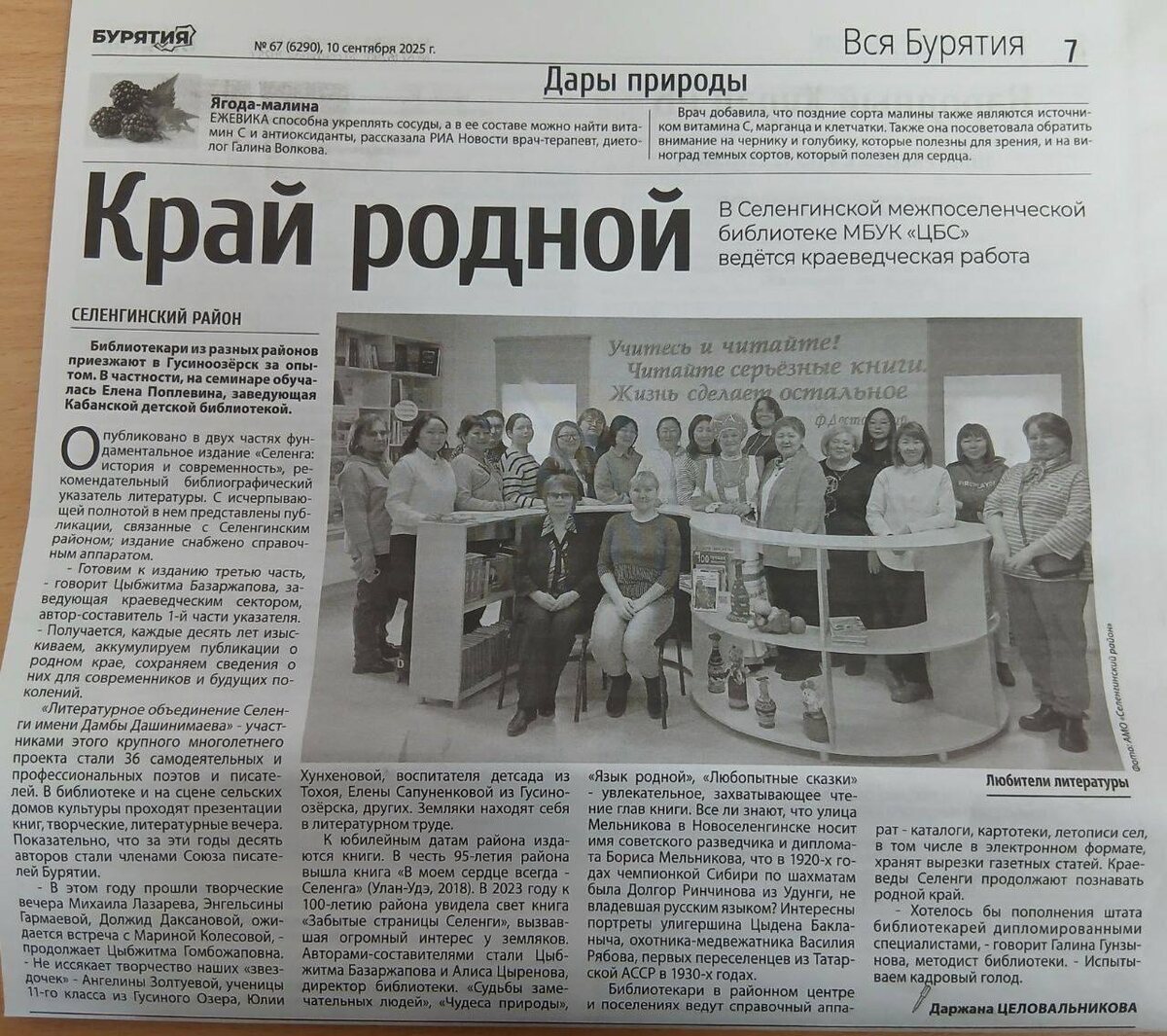 📖 Библиотека Гусиноозерска на страницах республиканской прессы