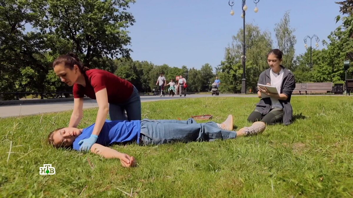 [ Смотреть видео на сайте НТВ ] Обязанность оказывать помощь есть у представителей некоторых профессий и появляется у любого человека, если он хоть как-то замешан, например, в драке или ДТП — даже когда не виноват, ведь по статистике скорая помощь успевает далеко не всегда. Всё популярнее становятся курсы, на которых учат тем несложным действиям, которые иногда могут спасти жизнь. У врачей для таких тренировок есть уже умные манекены, которые сообщают о своем самочувствии в приложении. Но даже более простые модели позволяют под контролем специалиста научиться, например, навыкам сердечно-легочной реанимации. Как учат тренеры, надо запрокинуть пострадавшему голову и прислушаться к дыханию 10 секунд. Если его нет, тут же начать реанимацию. Если приступить к ней в течение 7 минут после остановки дыхания, то человека можно спасти. Нажатия на грудь чередуются с вдыханием воздуха через рот с зажатым носом (желательно с использованием специальной маски для защиты от инфекций). Важно соблюдать