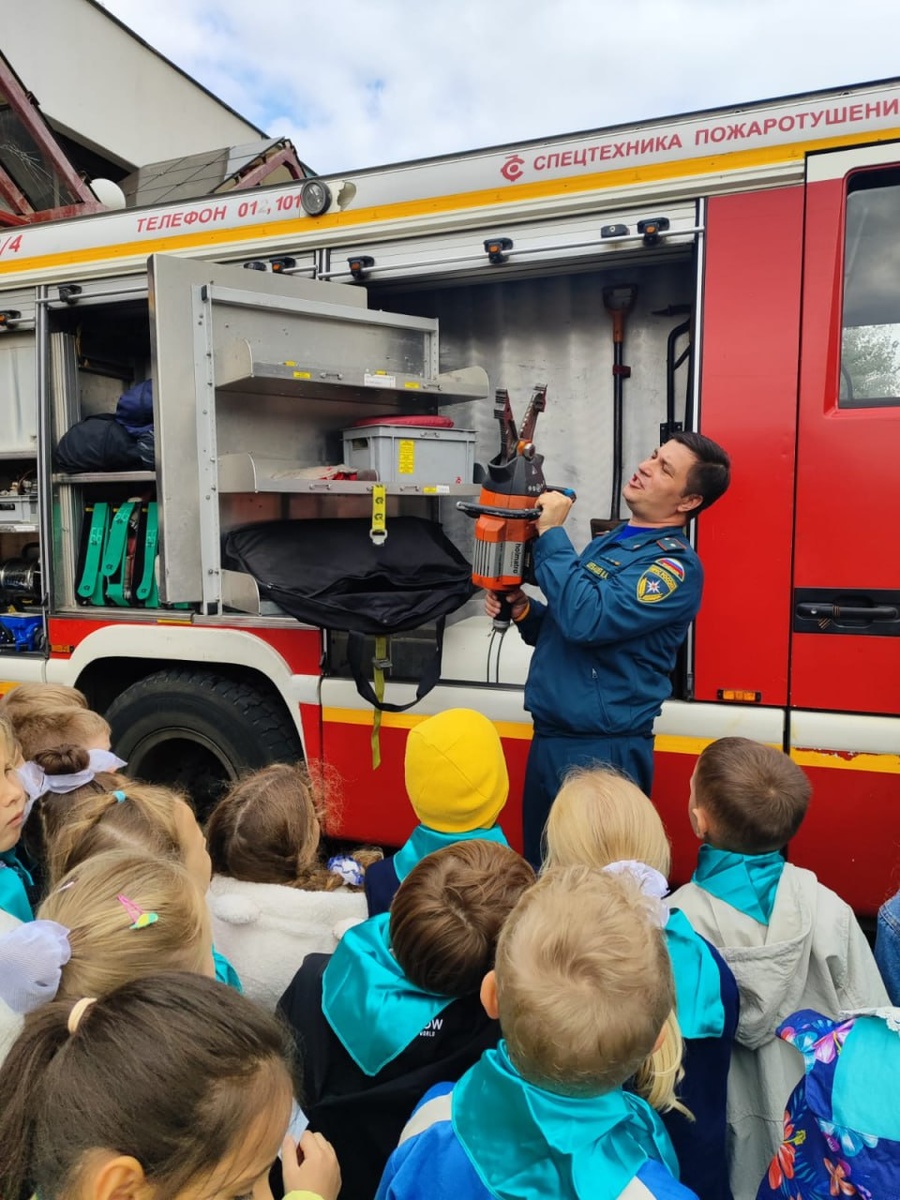 1"В" класс вместе с классным руководителем Ириной Александровной Корж посетил Пожарную часть №65 (Митино). Ребята остались очень довольны первой в их школьной жизни экскурсией. Особенно детям понравилось увидеть пожарные машины вблизи, примерить экипировку, посидеть в кабине машины. "Ребят ждало полное погружение в мир мужественных профессионалов, - рассказывает Дарья Владимировна Юшко, - они увидели настоящий гараж с действующими пожарными машинами, современное оборудование и спецодежду. Особую благодарность хотим выразить начальнику части Максиму Александровичу. Он не просто провел для детей экскурсию, а провел настоящий и очень важный урок безопасности. Он доступно и интересно рассказал о специфике работы пожарных, показал профессиональные инструменты и разрешил ребятам посидеть в кабине настоящей пожарной машины и примерить костюмы для фото. А главное — он заранее предупредил, что в случае настоящего вызова сработает сигнализация и всем нужно будет быстро отойти к березке. И вот эт