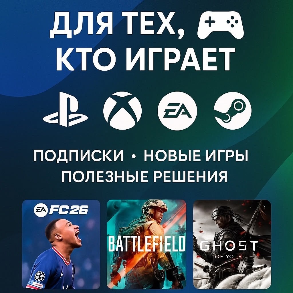🎮 Друзья, хочу поделиться с вами полезным сообществом для тех, кто играет на PlayStation, Xbox и PC. Там всегда публикуют свежие новости, разборы подписок и выгодных решений для геймеров. 👌 ⚡️ В группе можно найти информацию о PS Plus, EA Play, новых релизах вроде FC26, Battlefield 6, Dying Light: The Beast, Ghost of Yōtei и других топовых игр. Удобно тем, что всё собрано в одном месте — от подборок популярных проектов до подсказок по регионам (Турция, Индия, СНГ и другие). Если вы хотите быть в теме и следить за всем актуальным в мире цифровых игр — советую заглянуть в сообщество 👉 https://vk.com/clickpass59