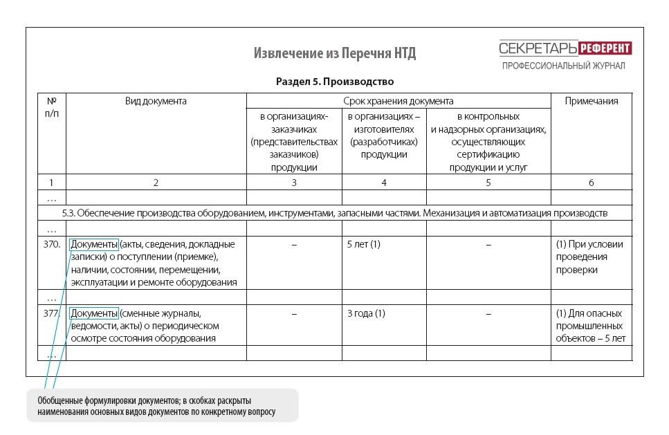 В Перечне НТД указаны наименования как отдельных видов документов (протоколы, рабочие журналы и пр.), так и их обобщенные формулировки (документы, проекты, планы, комплекты, реестры и пр.), при использовании которых в скобках раскрываются наименования основных видов документов (Пример).