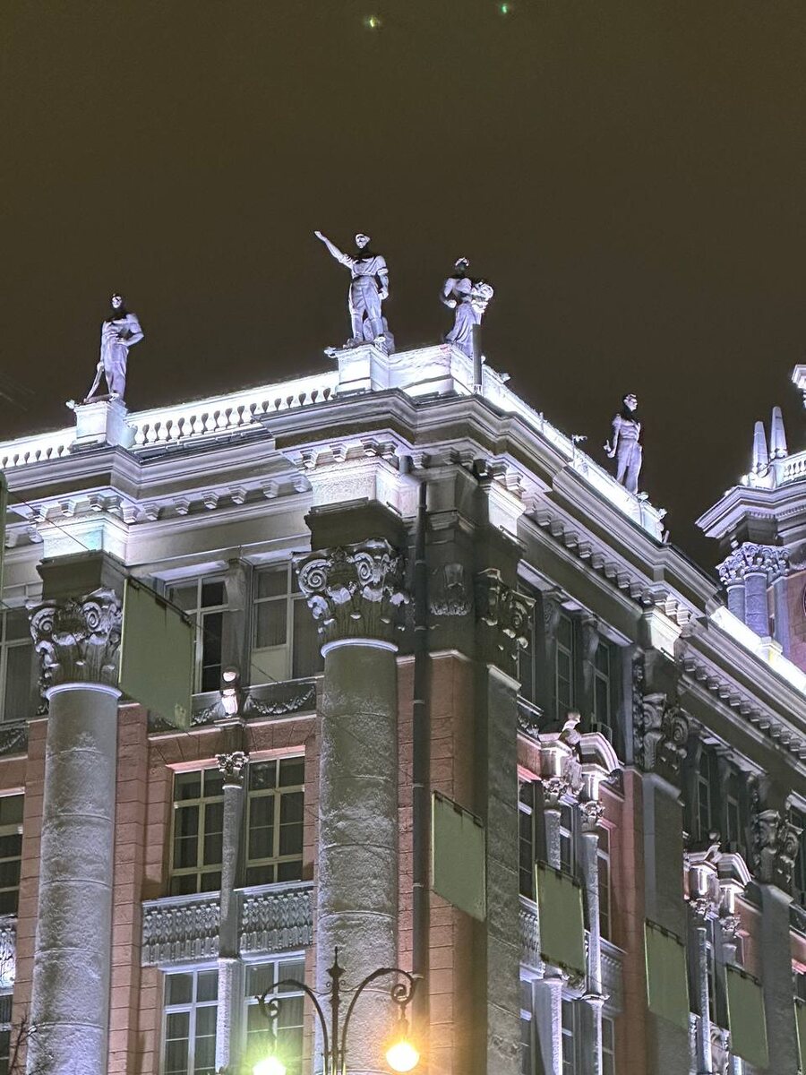 Екатеринбург. Администрация. Здание городской администрации несёт в себе следы многих эпох. Ещё до революции здесь было старое двухэтажное здание гостиного двора. К 1930-му году надстроили три этажа, превратив его в образец новомодного конструктивизма. В послевоенные годы, свежим взглядом было решено добавить гранита, мрамора и колонн. Ну а чтобы завершить мучения, к 1954 году добавили башню со шпилем. Остаётся только радоваться, что в новое время его не покрыли вентфасадом, а затем не остеклили. Хотя какие наши годы. Поживём — увидим. 📱 Архитекстура #Екатеринбург