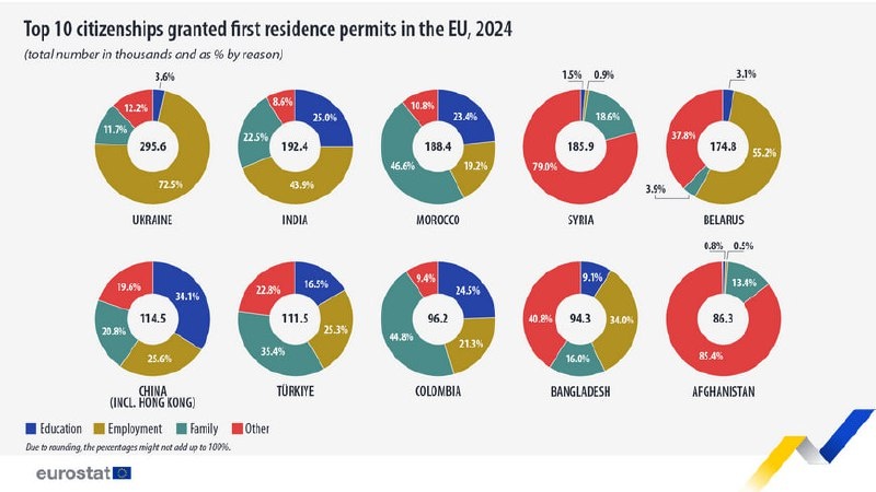 ЕС продолжает оставаться главным направлением для трудовой миграции, но баланс смещается - всё больше заявителей выбирают образование и международную защиту.
