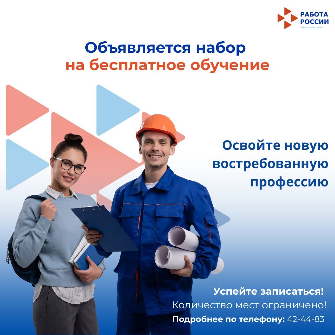 ⚡️ Мы объявляем новый набор на профессиональное обучение! 🔥 Хотите овладеть востребованной профессией или повысить свои навыки? Начать карьеру с нуля или сменить сферу деятельности? Наши курсы именно для вас, если вы настроены двигаться вперед и достигать больших целей! 🔥 Что вы получите: ✅ Новая актуальная специальность ✅ Ценные знания и практические навыки ✅ Удобный график обучения ✅ Документы, подтверждающие вашу квалификацию 🎓 Доступные направления: - Водитель автомобиля ( с категории В на категорию С, с категории С на категорию Д) - Охранник 6 разряда - Сварщик ручной дуговой сварки плавящимся покрытым электродом - Электромонтер по ремонту и обслуживанию электрооборудования 3-го разряда - Делопроизводитель - Младший воспитатель - Младшая медицинская сестра по уходу за больными - Оператор котельной Откройте двери новых возможностей и профессионального роста! 💪 Как записаться? 📞Телефон: 42-44-83 📍 Адрес: ул. Ленина 283а #Гражданам #Кадровый_центр