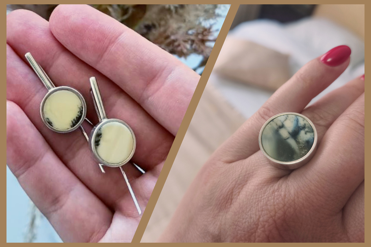 Приобрела колечко для себя и сережки для любимой дочки из необычайно красивого пейзажного янтаря.