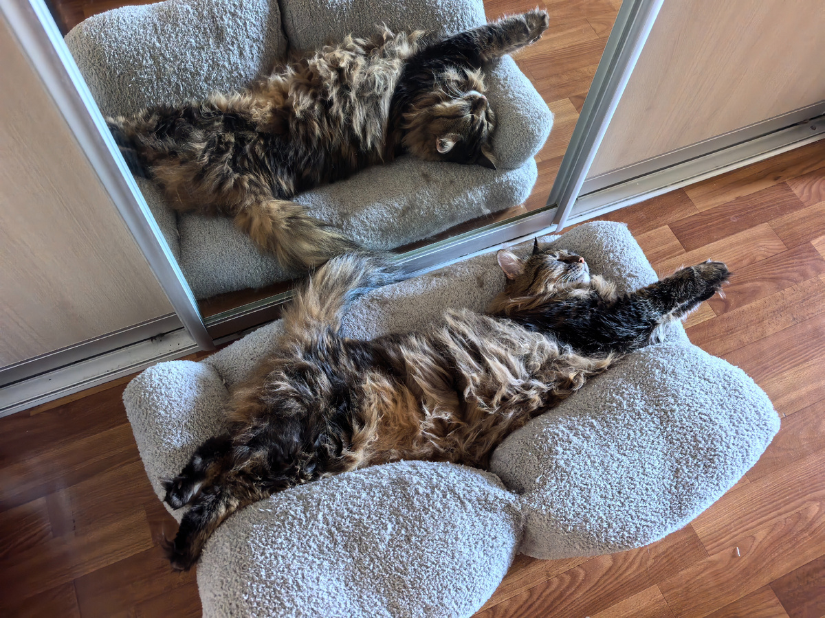 Всем привет! С вами Кузя Кусалочкин (он же царь Кузьма I). Сегодня я вам расскажу про погоду и как меня побеспокоила соседка. Я решил будить хозяйку немного позже. Теперь прихожу к ней не в 5:30, а где-то в 6:10. Но это не срабатывает, встаёт хозяйка по своему будильнику. На новые каналы я сейчас не подписываюсь. Дружить, забежать в гости времени нет. Но каждый раз она меня гладит, чешет шею, а потом я ложусь рядом и жду, когда хозяйка будет вставать. Потом мы вместе бежим на кухню. Первым делом мне накладывают паштетик на царскую тарелку. Вот только прохладно стало, и одной маленькой порцией паштетика я уже не наедаюсь. Поэтому прошу у хозяйки ещё что-нибудь. Пока мне на дополнительный завтрак варят креветочек и мидии. Я подкрепился и пошёл спать: Хозяйка, как всегда, занималась своими делами, а ближе к обеду ушла на море. Нам по прогнозу обещали сильный ветер и дожди. И уже стало становиться пасмурно, ветер дул. Но хозяйка всё равно немного полежала на пляже и искупалась. Вернула