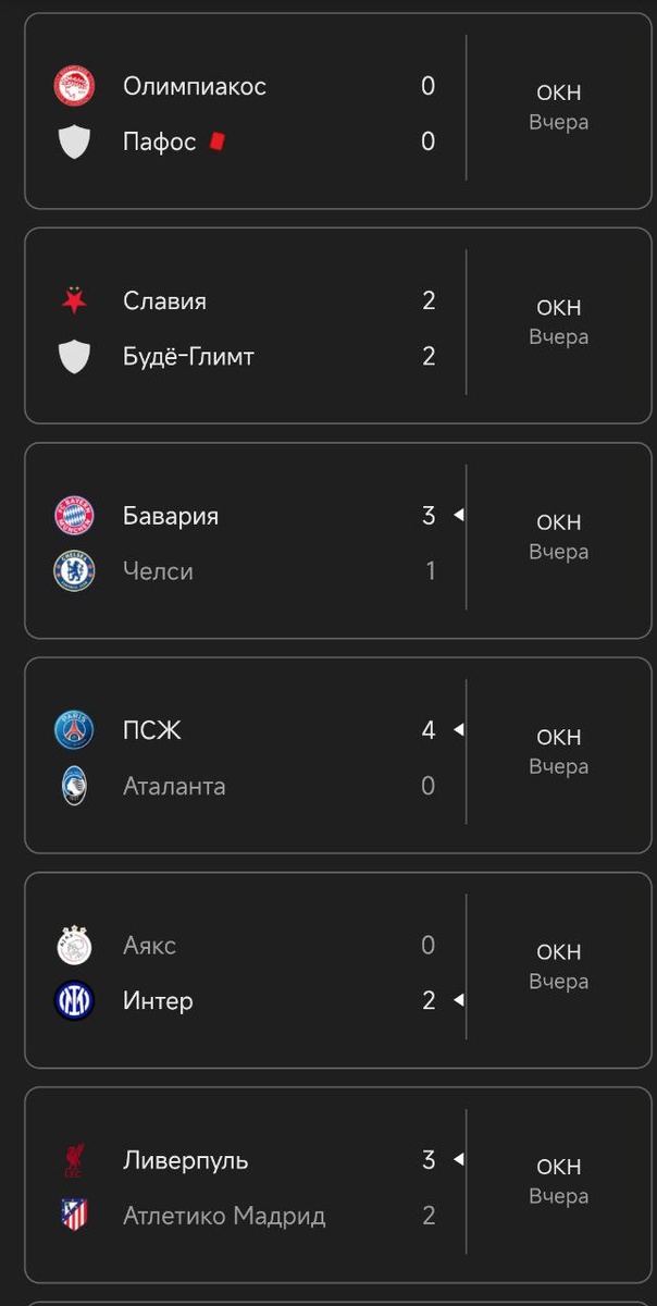 Результаты матчей ЛЧ за среду 🇪🇺 @мировой Футбол