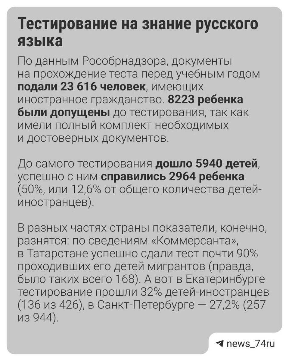 «А если они станут преступниками?» Перед новым учебным годом детей без российского гражданства проверили на знание русского языка. Федеральная статистика тревожная: больше 87% не попали в школы. Кто-то не справился с заданиями, кто-то даже не дошел до теста. 🟥 Жалобы родителей. К тестированию у многих возникают вопросы. В Мытищах, например, семья из Казахстана почти год не может устроить ребенка в школу, хотя мальчик с детства говорит по-русски. «Педагог нам сказала, что можно допустить только одну ошибку. Это очень странно, ребенку семь лет, он в незнакомом месте, с незнакомыми людьми, на него направляют видеокамеру, которая записывает процесс. Это стресс для любого», — рассказала «ИА Регнум» мать мальчика Евгения. Во время разбирательств выяснилось, что такой случай не единичный. Куратор фонда «Перелётные дети» Анна Орлова считает тесты слишком жесткими. По ее словам, даже русские дети с трудом справились бы с некоторыми заданиями. Анна Орлова говорит, что происходящее противоре