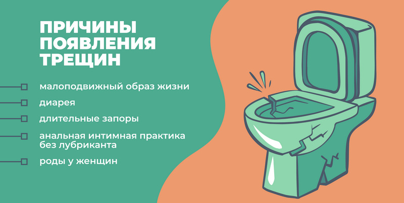 Травматизация слизистой в области анального канала является главной причиной появления трещин.