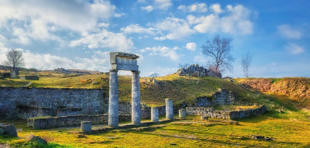 - Руины Пантикапея на горе Митридат: остатки акрополя, храмов и некрополей VI–III вв. до н.э. с панорамой на Керченский пролив.