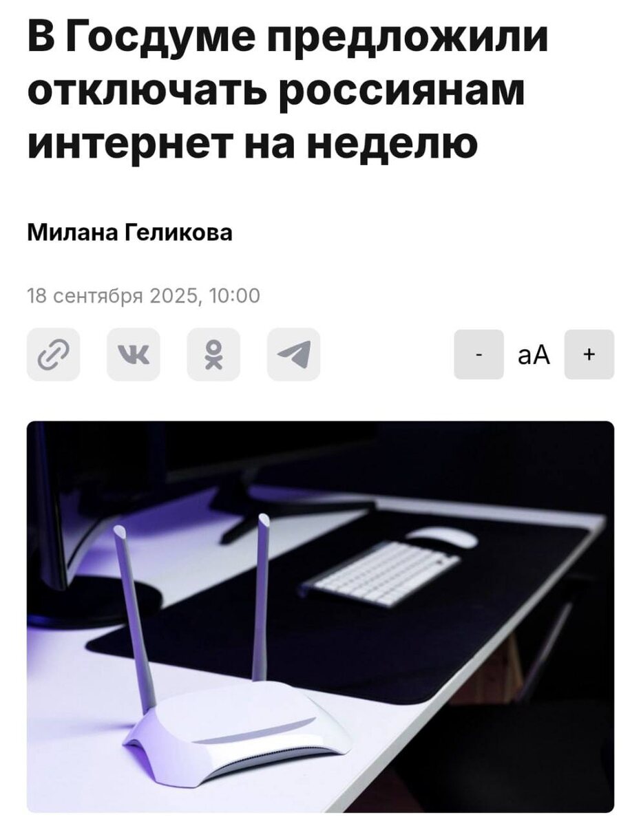 В Госдуме предложили отключать россиянам интернет на выходные или целую неделю. Инициаторы считают, что такая мера позволит гражданам сэкономить средства и снизить уровень стресса. П о словам депутатов, чрезмерное использование сети приводит к зависимостям, вредит психическому и физическому здоровью, а также зрению 👉🏻Новости №1 в Ростове 💌Прислать новость/фото Ростов Папа теперь в Ⓜ️🅰️❌