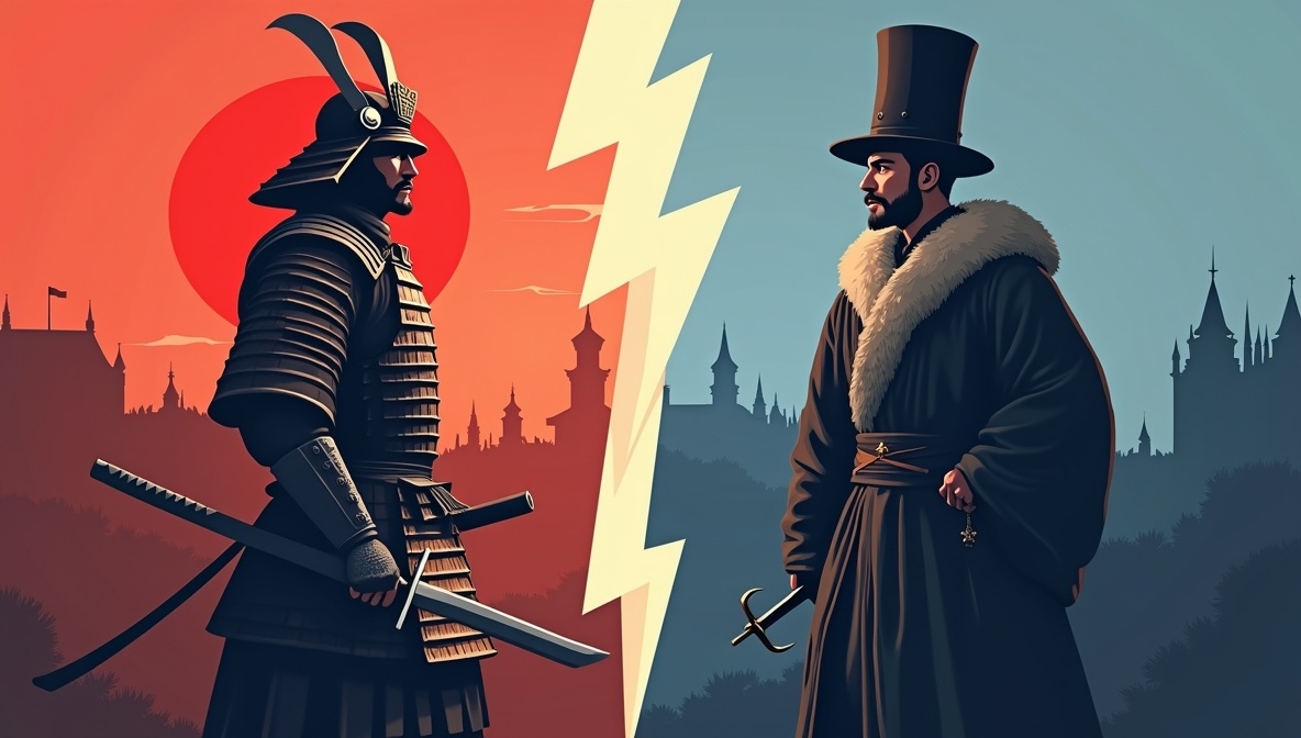 В Японии народ живёт спокойно, но строго по правилам. В России народ переживает мятежи и голод, но в итоге рождается новая династия — Романовы.