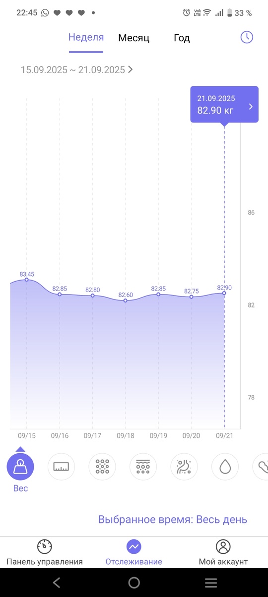 Всем доброго дня. Сразу раскрою карты с весом. Вес: 82,6 кг. Шестой день первые цифры веса 82. И это несмотря на поздние ужины часов в одиннадцать вечера. Уже практически в течении недели стабильно 82, не возвращаясь к 83, при средней активности шагов 9000, 20-30 минутных домашних тренировках 3 дня в неделю, пока продолжу на той же калорийности 1800-1900 Кк. На этой неделе 2 тренировки, третья должна была быть сегодня в воскресенье, но я затеяла дома перестановку, вновь двигала шкафы и кровати ( шкафы 240*160*52 и 240*80*52, кровати 140*190 с высокой спинкой и детская домик 180*80) и прочую лёгкую мелочь типо столов, диванчика и небольших шкафов пока дети спали. В общем физ нагрузки на верх мне хватило с лихвой на эти выходные. Сегодня нужно перекинуть два низких шкафа в другую половину комнаты и переставить морозильный ларь из коридора в комнату туда, где он будет стоять примерно год до ремонта комнаты. Пока двигала самый большой шкаф повредила линолеум 🥲, очень силь