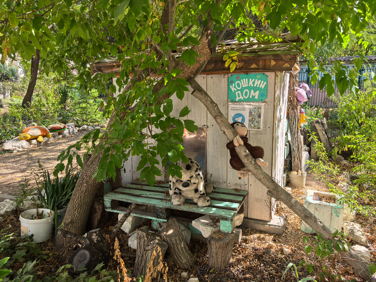 В этой статье посмотрим на домик для котов, который находится в одном из дворов Севастополя. Ну что, давайте посмотрим домик? Статья написана автором канала на Дзен «Прогулки по Севастополю». Копирование или использование материалов без согласования с автором запрещены. Гуляя по дворам, обнаружила вот такой кошкин дом: Я его видела и раньше. И могу отметить, что со временем домик преображается и расширяется. Даже, похоже, что у его обитателей появилась своя группа в одном мессенджере. Домик этот находится на улице Молодых строителей. Есть такая улица в пятом микрорайоне Гагаринского района. Находится она довольно далеко от центра города: Более точный адрес в этот раз называть не буду. Одно дело, когда это известное всем место в центре города, и совсем другое, если это домик в обычном дворе. Люди разные бывают, и не все желают животным добра. Рядом с домиком много мягких игрушек и различных табличек. Лев просит заходить с гостинцами, а выходить с хорошим настроением: А тут просят за