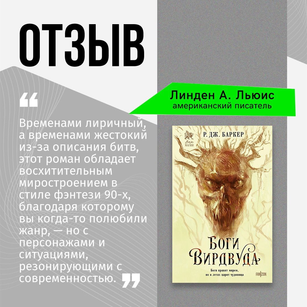 Делимся отзывами на роман Р. Дж. Баркера «Боги Вирдвуда»! 📖 Все знают лесника Кахана, который ориентируется в лесах Круа как никто. Раньше он был мальчишкой без защиты клана. Но монахи огненного бога сделали его Капюшон-Рэем, который исполнит пророчество о конце мира. Из него сделали яростного убийцу, а потом оставили в одиночестве. Вернувшись на семейную ферму, Кахан обещает никогда больше не использовать свои силы. С новой властью пришли и новые боги. Годы бегства не дали Кахану ничего, кроме разочарования, и когда одинокая жрица просит его помощи, он решает принять бой. Эксмо | Читай-город | Ozon | Wildberries