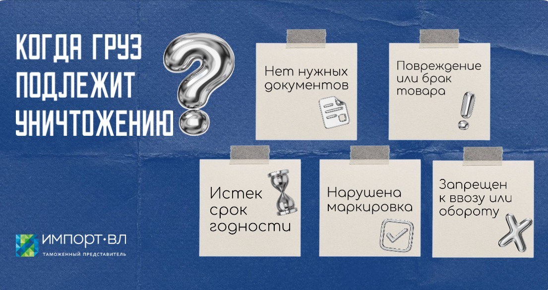 Основные причины для уничтожения груза: