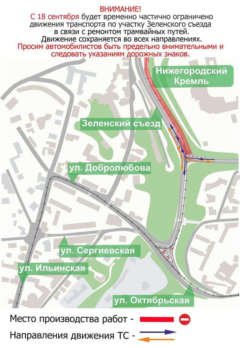 С 18 сентября 2025 г. в Нижнем Новгороде будут действовать ограничения движения транспорта на участке Зеленского съезда из-за сооружения монолитных участков трамвайных путей. Об этом сообщили в городской администрации. Работы будут проводиться в районе Коромысловой башни нижегородского кремля. При этом движение по Зеленскому съезду сохранится во всех направлениях, — говорится в сообщении. Как уже писал NN.DK.RU, концессионное соглашение на модернизацию системы электротранспорта в Нижнем Новгороде было заключено с ООО «Экологические проекты». В рамках проекта в городе будет переложено 149 км трамвайных путей. Сообщалось также, где в Нижнем Новгороде будут менять трамвайные пути в 2026 г.