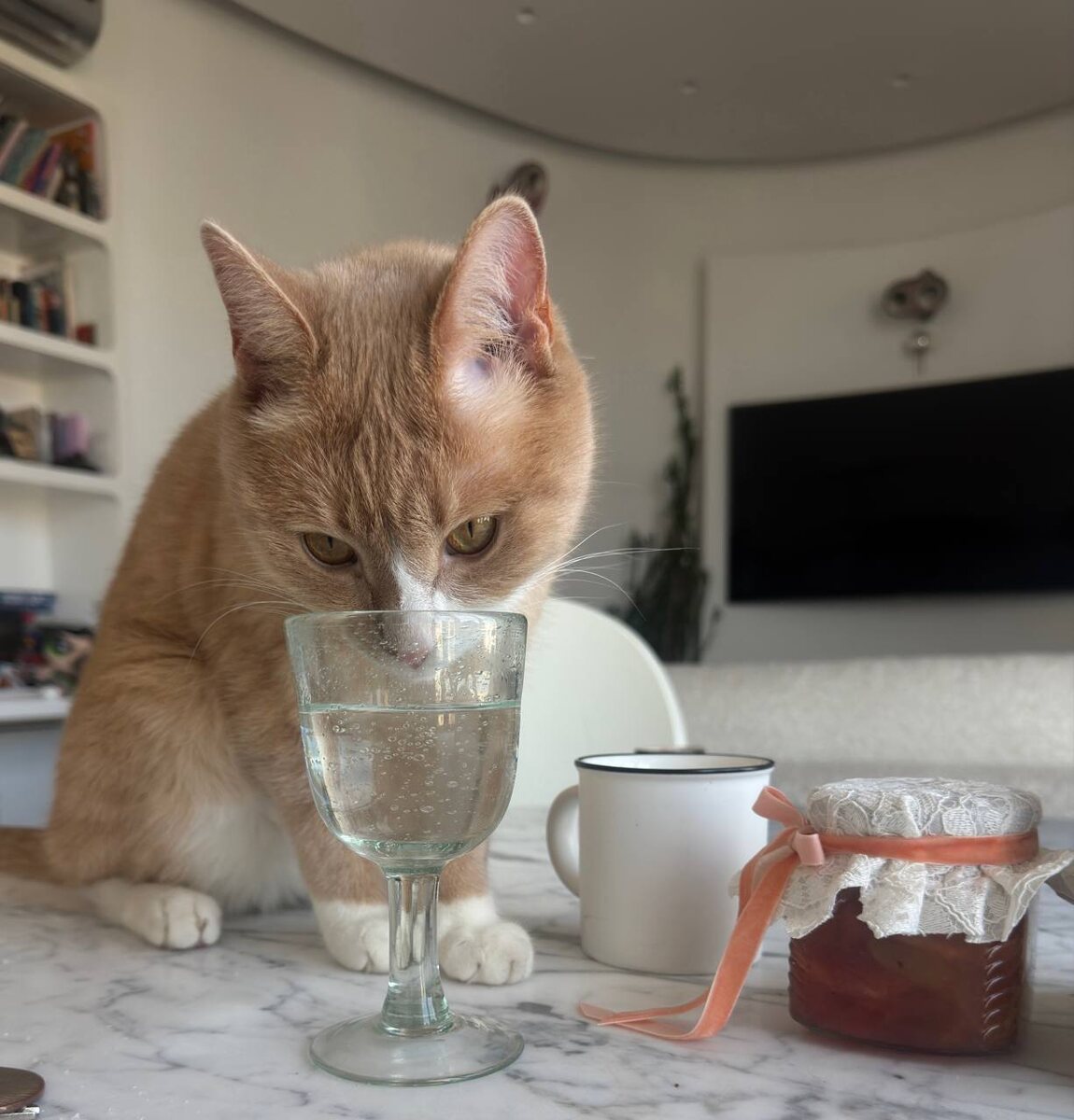 Доброе утречко от Санни,который начинает день с бокальчика с водой